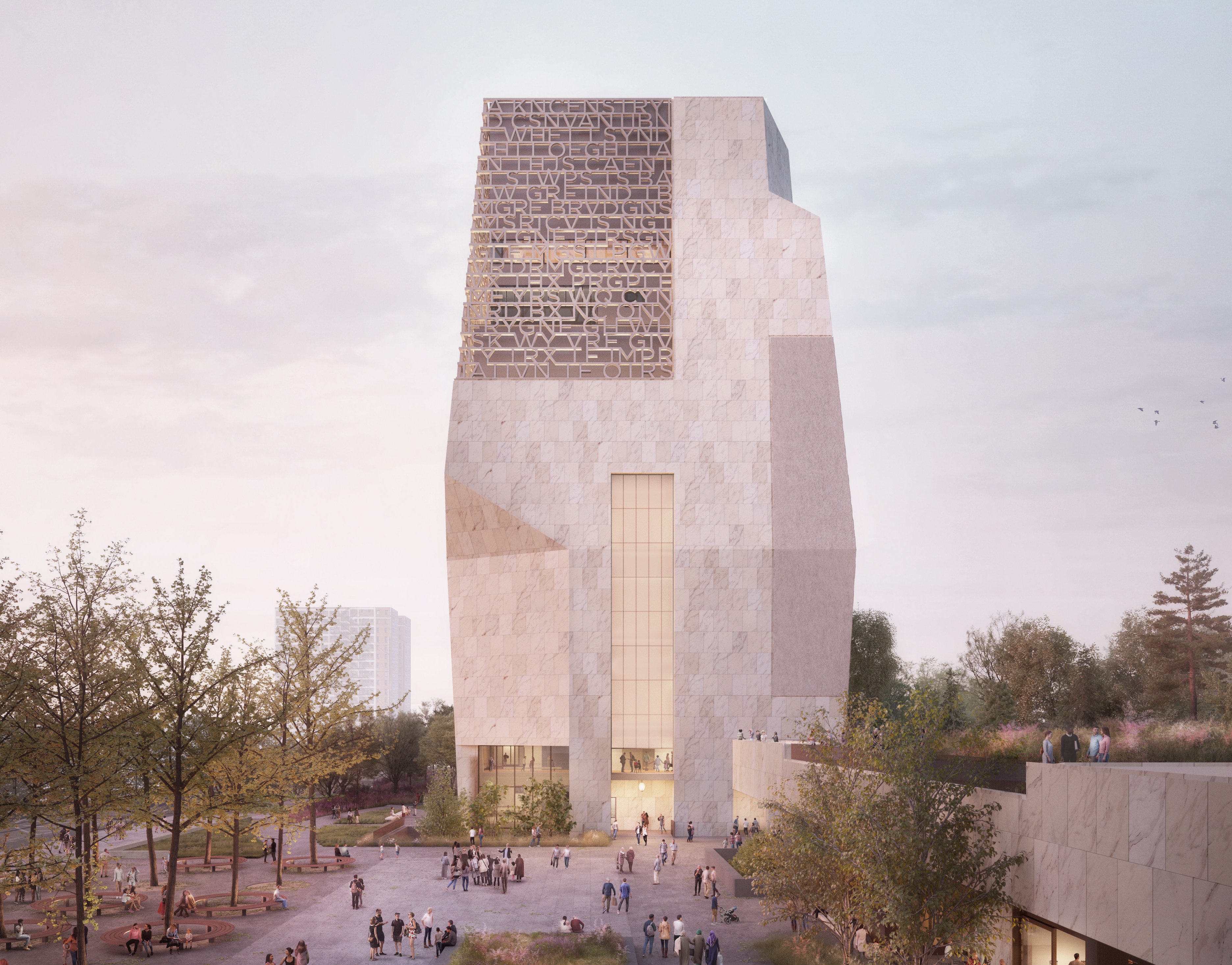 심슨은 '얼음' 시리즈의 최신 작품인 'Durative(2026)'를 OPC를 위해 제작했다. 이 작품은 그녀의 회화된 빙하 풍경을 묘사하며 세미나 룸에 전시될 예정이다. 심슨은 이 작품을 만들기 위해 연기와 빙하의 실크스크린 이미지를 겹쳐 놓고 아크릴 물감을 유리섬유에 떨어뜨렸다. 개인 식당에서는 후고 맥클라우드의 'Hidden Reflection(2026)'이 전시되며, 이는 전 대통령의 삶에서 중요한 장소에서 영감을 받았다. 이 그림은 지리적 맵핑과 추상화를 결합하여 기억과 장소가 개인의 역사에 어떻게 영향을 미치는지를 추적한다. 마틴 퓨리어는 센터의 중앙 광장에 '정의를 향해 아크를 구부리기'라는 마틴 루터 킹 주니어의 자주 언급된 구절에서 영감을 받은 기념비적인 조각을 기여했다. 이 곡선 형태는 이 아이디어를 물리적 제스처로 변환한다. 노먼 티그는 한편, 견고한 호두나무로 만든 8개의 나무 벤치 시리즈를 제작했다. '예술 프로그램은 시간이 지남에 따라 발전하고 확장되었으며, 오바마 부부의 유산과 우리 국가의 영혼을 반영하는 예술과 문화의 힘에 대한 그들의 지속적인 믿음과 일치한다'고 쇼어와 버나드는 말했다. '백악관에 있는 동안 그들은 '국민의 집'으로 재구상하며 더 넓은 범위의 목소리, 관점, 창의적 표현에 문을 열었다. 이러한 정신에서 우리의 프로그램은 다양한 아티스트의 선택을 통해 이 정신을 구현하고자 한다.' 가장 주목할 만한 위임 중 하나는 에티오피아계 미국인 아티스트 줄리 메헤르투의 83피트 높이의 파사드로, 2024년 9월에 발표되었다. 이 스테인드 글라스 창문은 '태양의 봉기(Uprising of the Sun)(2026)'이라는 제목으로, '모든 방문객이 센터의 사명의 일원이 되도록 초대하는 것'이라고 메헤르투는 당시 말했다. 이러한 위임 작업을 하는 많은 아티스트들은 박물관이 위치할 시카고, 특히 도시의 사우스 사이드와 연관이 있다. 여기에는 리차드 헌트, 테아스터 게이츠, 타야나 제이 부이의 이전에 발표된 위임이 포함된다. '시카고와 의미 있는 연관이 있는 아티스트를 선택하는 것은 의도적인 큐레토리얼 선택으로, 도시의 에너지, 커뮤니티, 오바마 부부의 지속적인 유산을 센터의 예술 프로그램의 모든 측면에 내재화하려는 우리의 헌신을 반영한다'고 쇼어와 버나드는 말했다. 이전에 발표된 위임에는 린지 아담스, 마크 브래드포드, 네키샤 듀렛, 스펜서 핀치, 제이 하이크스, 제니 홀저, 줄스 줄리앙, 이드리스 칸, 마야 린, 알리자 니센바움, 잭 피어슨, 앨리슨 사르, 키키 스미스, 캐리 메이 윔스 등의 작품이 포함된다.